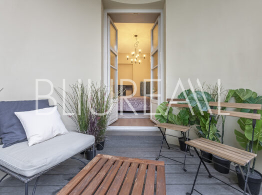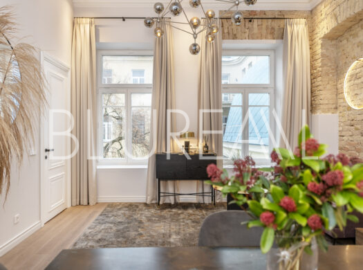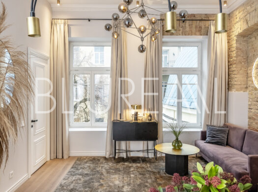 Pakilus liftu į trečiąjį aukštą rasite moderniu stiliumi įrengtus apartamentus su aukštomis lubomis bei atidengtomis istorinėmis sienų detalėmis. Apartamentuose įrengti du komfortiški miegamieji, šviesi svetainė su virtuve ir erdvus vonios kambarys.